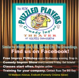 taught by Russ The BIG Guy, Executive Director and Creative Director of The NEW Puzzled Players of Greater Binghamton-a group of funny improvisers who share their love of the art of improvisation and their sense of humor with you! It's THE fun place to go on Wednesday evening.