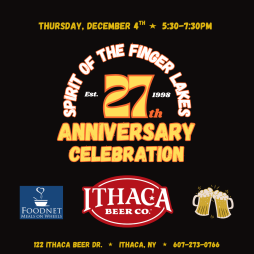 Cheers to 27 Years! Ithaca Beer Company is raising a pint to 27 years of craft brewing with an anniversary celebration at its Taproom on Thursday, December 4th, 2025. The event will feature live local music by Pierce Walsh & Friends, limited beer releases, signature appetizers, raffle prizes benefiting Foodnet Meals on Wheels, and much more — all in honor of nearly three decades of brewing innovation and local pride.