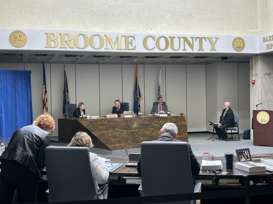 The Broome County legislature chamber was filled with people on Thursday night. It was a mix of residents and county employees. Among them were County Executive Jason Garnar, District Attorney Paul Battisi and Sheriff Fred Akshar.
